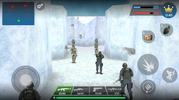 Play the role of police, special forces or robbers and show your fighting skills in the Android first person shooter game.