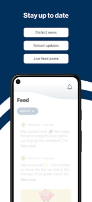 DISTRICT UPDATES In the Live Feed is where you'll find updates from the administration about what's going on in the district right now. Whether that's celebrating a student's success, or reminding you about an upcoming deadline.